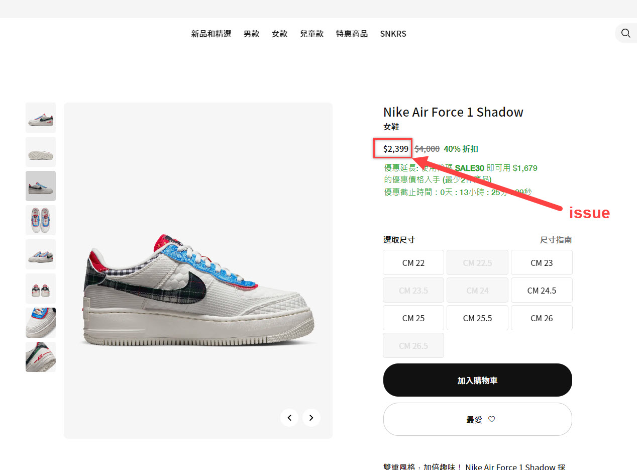 1.對 Nike 官網的建議:$2,399這數字可不可以用紅色,不要用黑色。我覺得比較直接。讓客戶知道這是最便宜的價格了。