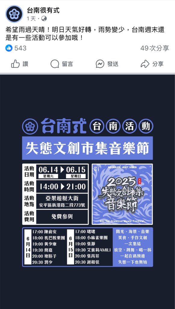 <台南很有式 Facebook 粉絲專頁刊登此活動>