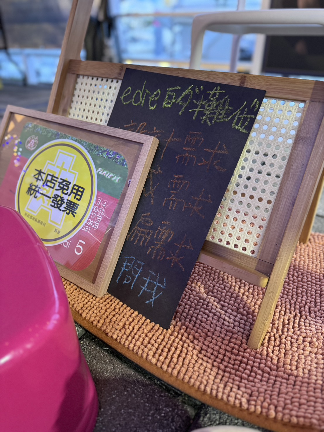 負責:手寫看板、本店免用統一發票貼紙申請與裱框選購。