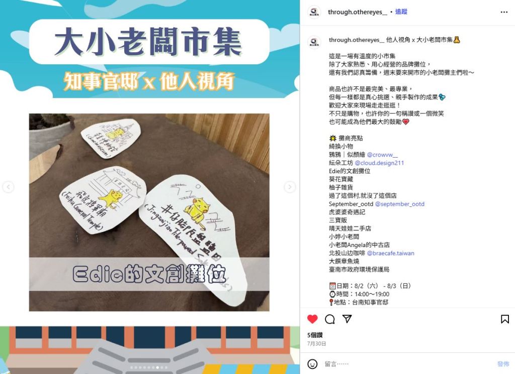 <商品照被刊登在他人視角IG(擺攤日延到8/31)。IG:https://www.instagram.com/p/DMugotXpCAE/?utm_source=ig_web_copy_link&igsh=MzRlODBiNWFlZA==>